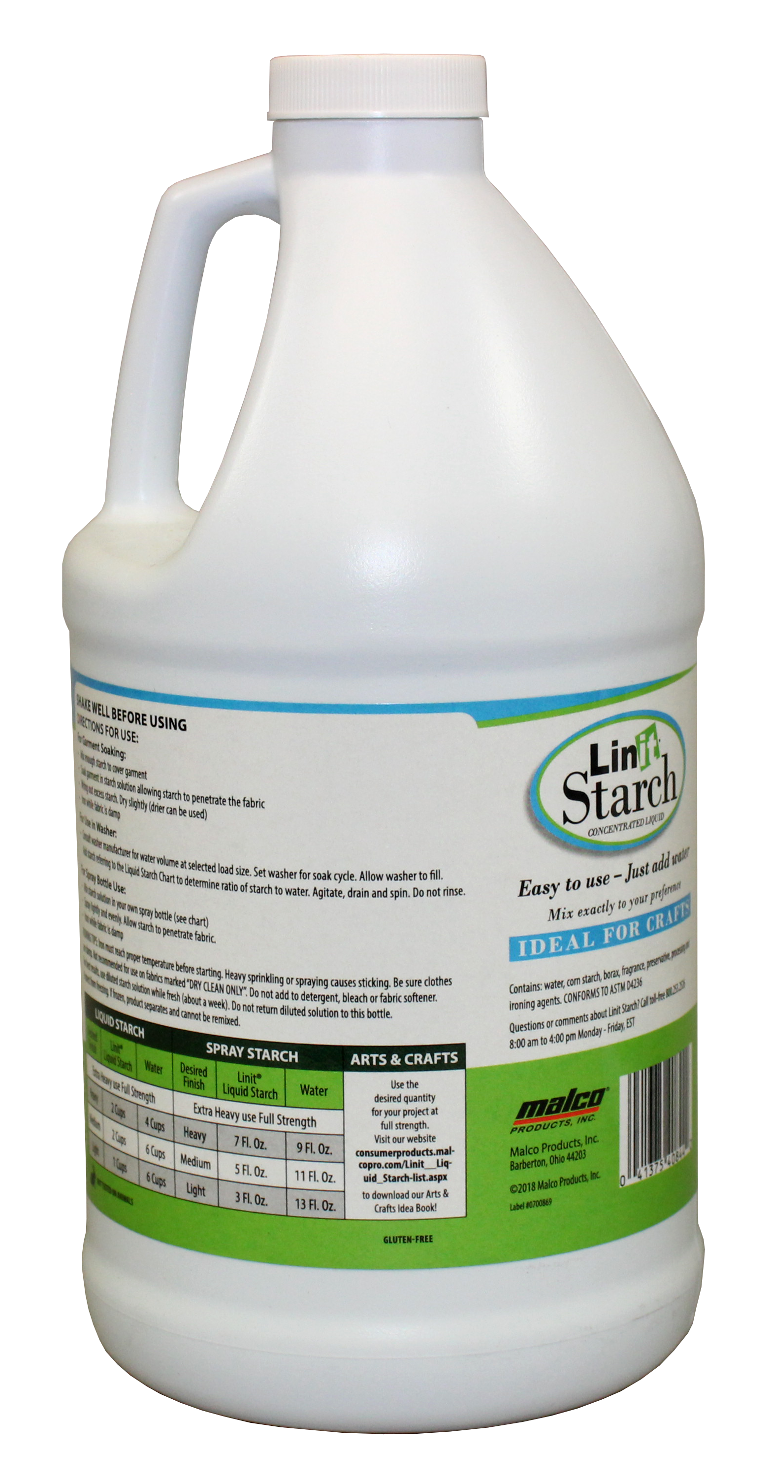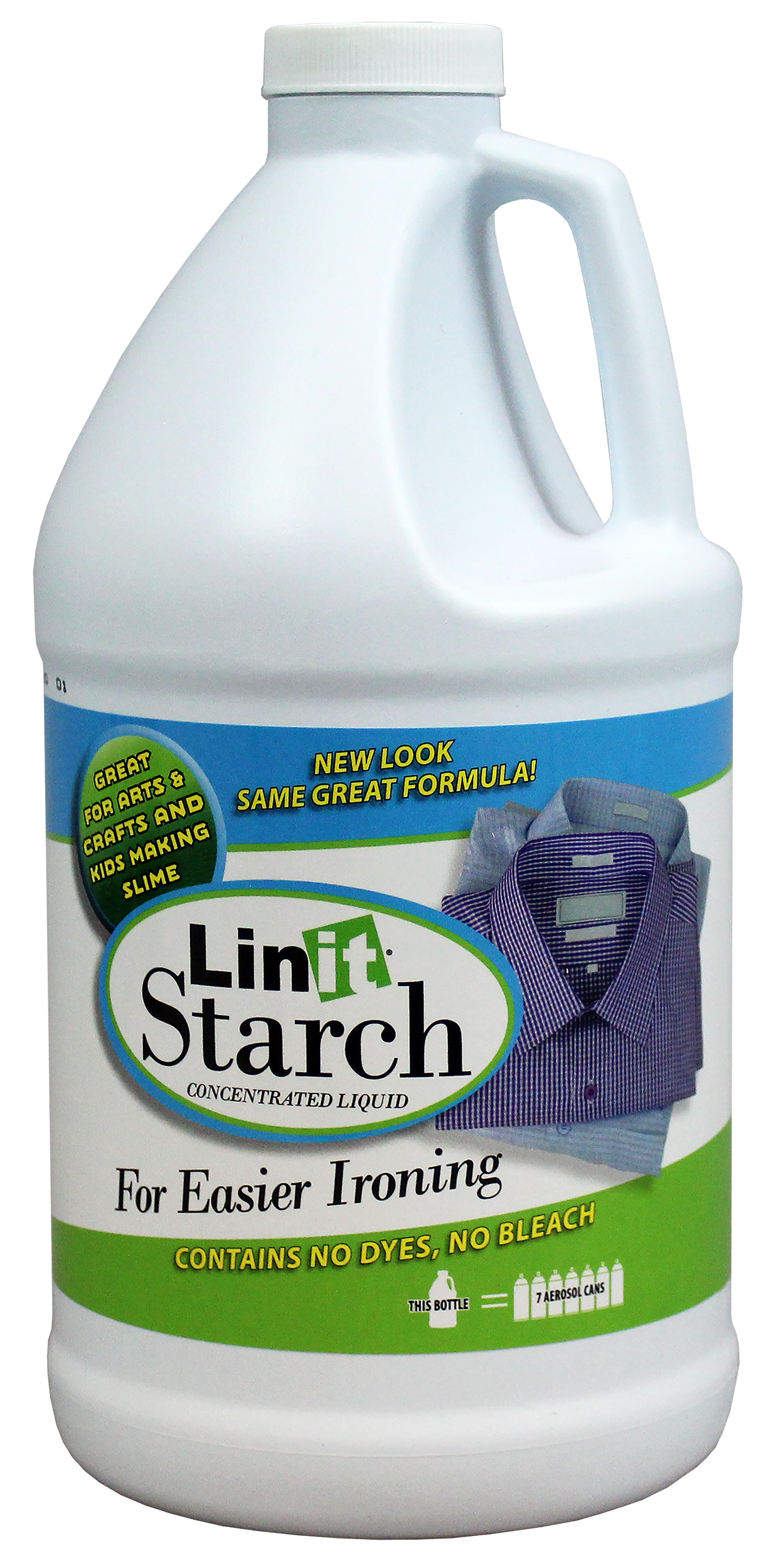 Linit® Starch is a concentrated liquid that allows you to achieve a flawless, classic finish. Each 64-ounce bottle is equivalent to seven cans of aerosol starch. It offers exceptional value, is proven to release and eliminate wrinkles, and ensures you look and feel fresh every time you get dressed. Elevate your garment care routine with Linit for a timeless, polished appearance. Beyond enhancing clothing, this versatile starch is perfect for arts-and-crafts projects such as slime and paper mache.